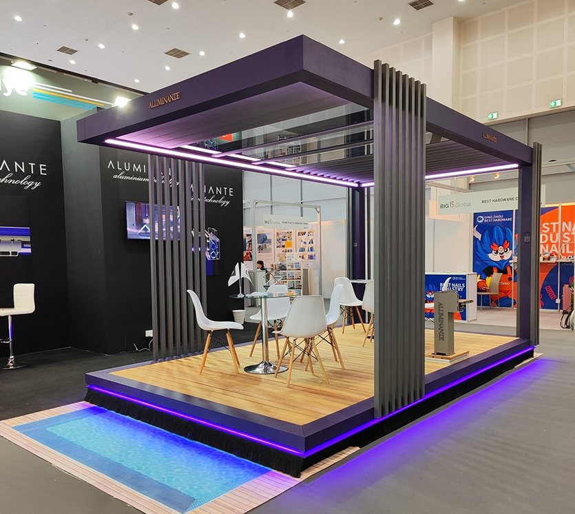 Aluminante at Big 5 Dubai 2024: showcasing the Tiburon mobile platform and the Acura Q27 bioclimatic pergola.